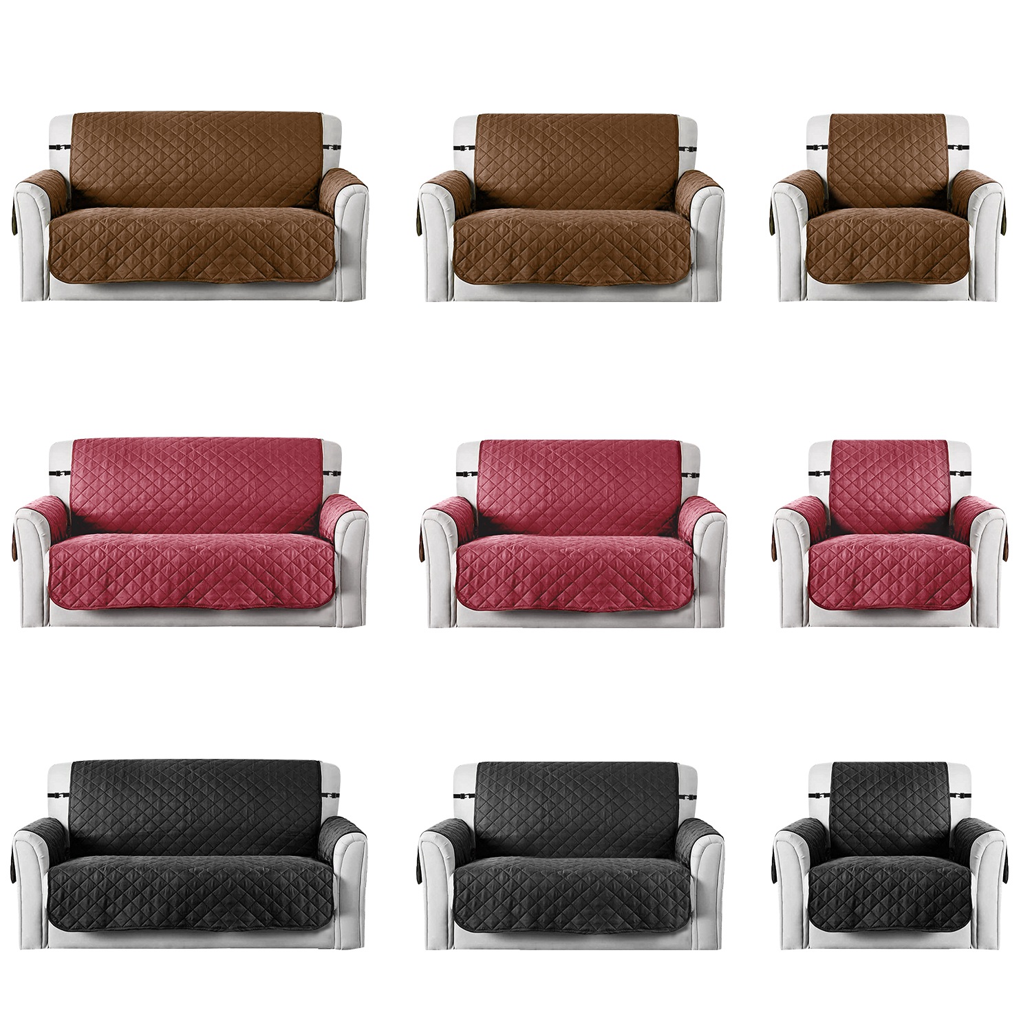 Do you want a fresh look for your living room? Do you feel troubled by pet hair or stains on the furniture left by your pets or kids? Try our reversible sofa cover. Our sofa cover is made of BPA-free, anti-bacterial premium polyester, the soft and skin-friendly fabric is 100% safe for your kids and pets. The material is also water resistant and stain-proof, in case your kids or pets staining or scratching the cover, protecting your furniture better. Whenever the sofa cover gets dirty, you can throw it into the machine and get a clean and fresh cover every time. The sofa cover installment is very easy, with an adjustable elastic strap and 2 hooks, you can easily install the cover by expand it and tie the strap to the backrest to prevent sliding. The reversible design allows double-sided use, giving you different color for different season. We offer you 3 colors and 3 sizes, which can fit your sofa, loveseat and chair, please measure your couch to select a suitable size.